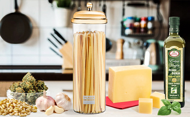 Привычные спагетти заиграют новыми красками вкуса, пользы и эффекта, если добавить каннабис. Потребуется 500 г спагетти, 4 г декарбоксилированных соцветий конопли, 60 г кедровых орешков, 5 зубчиков чеснока, 80 г свежей зелени базилика, 120 г пармезана и 100 мл оливкового масла.