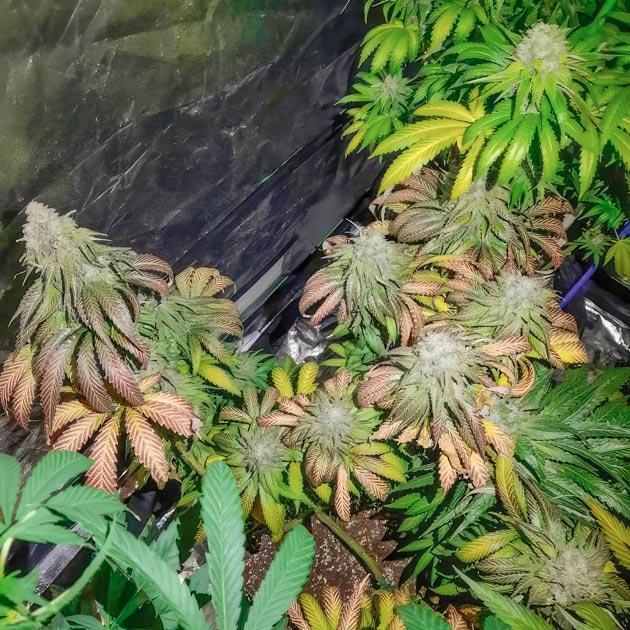 Аромат в боксе теперь просто сказочный, шишки выглядят великолепно, а липкая смола под лампой блестит, как кристаллики сахара. Дело идет к завершению, и растения это показывают всем своим видом. Потребление воды и питания заметно снизилось, поэтому на этой неделе решил промыть пять из шести кустов. Теперь они получают чистую воду для вымывания остатков солей и подготовки к харвесту. Один экземпляр пока держу под наблюдением. Он отстает и требует еще немного времени, прежде чем присоединится к общей партии.