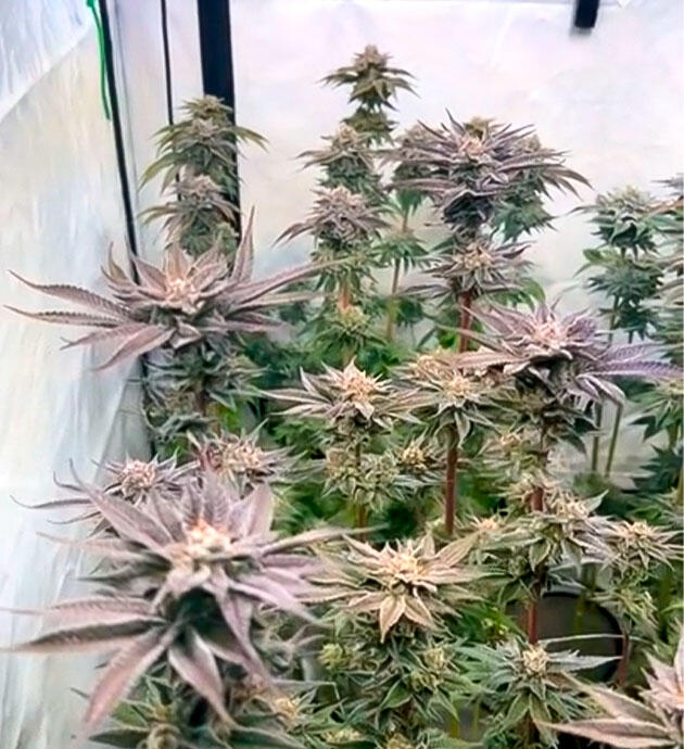 Извиняюсь, друзья, что пропал с радаров на несколько недель. Меня сразил грипп, из-за которого я еле поднимался с кровати, не то что готовить фотоотчеты для дневника. Но, если коротко, все шло просто отлично. За это время кустики Persian Pie превратились в настоящих красавиц. На их листьях и соцветиях появились яркие фиолетово-розовые оттенки, которых я ждал с большим нетерпением. Аромат теперь стоит просто сумасшедший. Смесь фруктовых леденцов заполняет весь бокс и доставляет отдельное удовольствие при работе с кустами.
