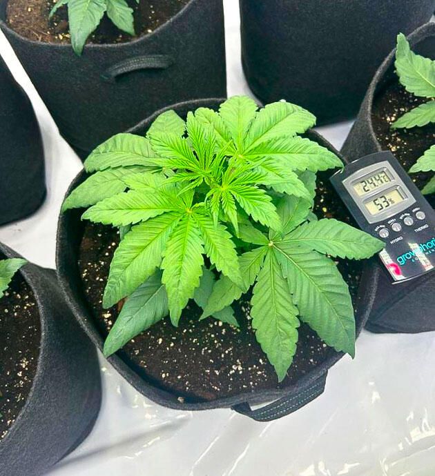 На этой неделе пришлось немного побороться с высоким VPD. Слишком жарко и сухо. В итоге влажность падала, что немного замедлило рост. После корректировки параметров растения быстро вернулись к нормальному состоянию.