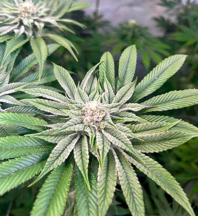 Растения Persian Pie чувствуют себя прекрасно. Зелень сочная, листья гладкие, без признаков стресса или дефицита. Кусты активно переходят в фазу настоящего цветения. Теперь на верхушках побегов уже красуются не простые белые ёжики, а полноценные бутоны, которые начинают уплотняться и покрываться первыми слоями блестящей смолы.