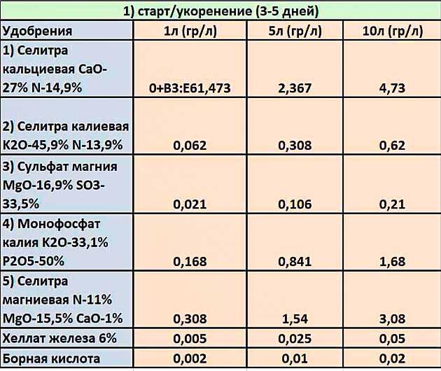 Пошла вторая неделя веги. На восьмой день сделал первый полив тремя литрами компота, до этого поливал только при высадке. Состав смеси на фото. Растишка пока набирает корневую, сейчас главное – лишний раз к ней не лезть.