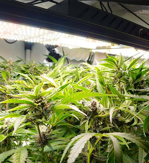 Для выращивания я использую треугольный гроубокс Homebox Vista Triangle 120 х 75 x 200. После стандартных квадратных и прямоугольных палаток это настоящая находка. Он отлично стоит в углу комнаты, в нем удобно ухаживать за кустом, в общем, я полностью доволен и ни разу не пожалел, что приобрел себе именно такой бокс. Второй важный аспект – гровлю я на гидропонике. Пробовал и почву, и кокос, но остановился на гидре. Кто бы что ни говорил, а именно так можно добиться наилучших показателей, при этом все чисто, удобно и аккуратно. На веге буду использовать два кастомных LED-светильника общей мощностью 185 Вт, на цвет повешу борд на самсунговских LM301H с возможностью включения красного спектра, дальнего красного и УФ. Удобрения – база Grow + Bloom от Vitalink.