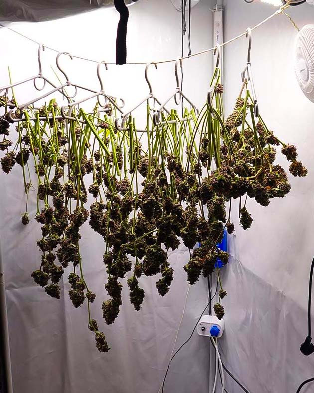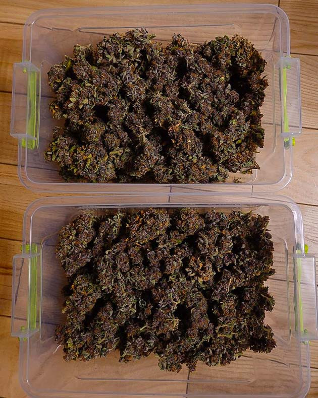 Конечный результат после просушки составил 293 грамма соцветий, трим и листву не взвешивал. Отличная урожайность для автоцвета, я полностью доволен. Маникюрил соцветия сразу после рубки, разделив ветви для удобства сушки. Высохли они за 6 дней в боксе при 27 °C и 50 % влажности.