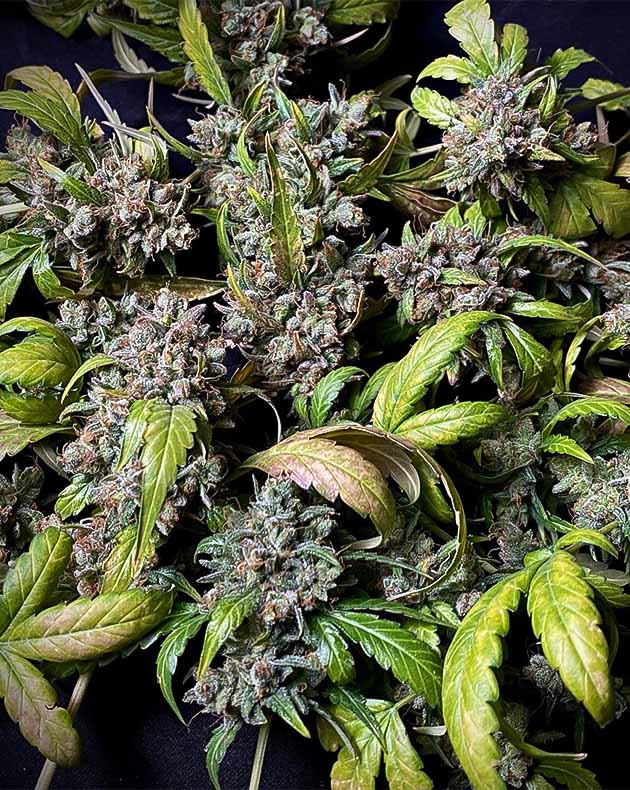 Проверка трихом показала около 60 % мутных и некоторое количество янтаря, так что на 75-й день я сделал прощальную фотосессию и поместил куст на 48 часов в полную темноту, чтобы соцветия стали еще более смолистыми.