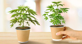 К концу второй недели высота одного Skywalker 7 см, и у него начинается формирование третьей пары листьев, а второй росток в два раза меньше и трудится только над развитием второй пары листьев. Я не расстраиваюсь, ведь растения развиваются быстро, и уже через несколько недель этой разницы может и не быть. На фото горшки с марихуаной Skywalker помечены зелеными стикерами.