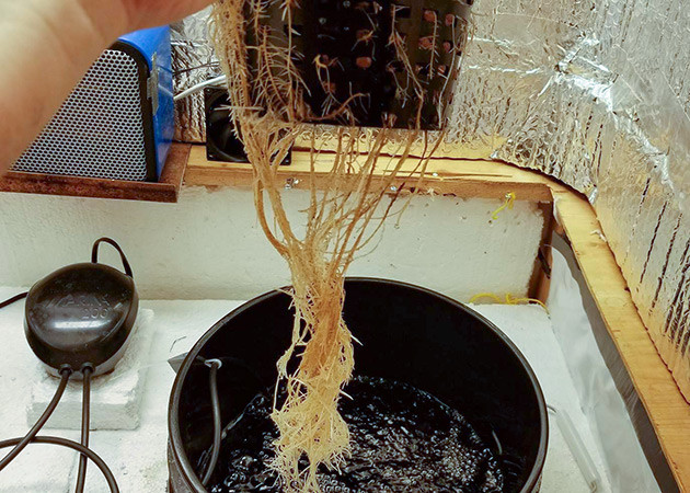 12-я неделя, и – о чудо! – корни постепенно пришли в норму. Не идеальное состояние, но куда лучше, чем было. Так что если у вас проблемы с корневой гнилью или что-то похожее, то Tarantula поможет. На данном этапе ppm раствора 700, состав не меняется. Температура в боксе 28 °С, ночью опускается на 5 градусов. Влажность 35 %. Температуру раствора меряю периодически, она находится в диапазоне 18-19 °С.