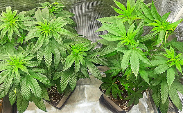 На 15-й день кустики получили по порции BioGrow 0,5 мл/л, лил по 100 мл на каждый. После того как грунт просох, пересадил их в горшки по 3,5 литра и дал им воды с Bactohemp 1 мл/л. Понизил влажность в палатке до 65 %.