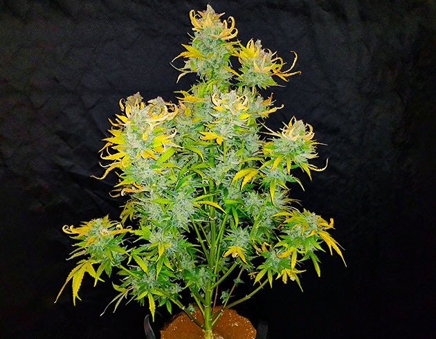 Количество смолы у этого сорта просто невероятное! Растения пахнут сладким лимоном с тонким намеком на сканк. Настолько приятно, что от него даже начинает более активно выделяться слюна.