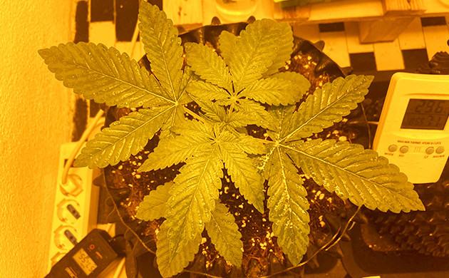 Из удобрений pH Perfect Sensi Coco Grow A и B по 1 мл/л, а также по 2 мл/л В-52 и Voodoo Juice. Несмотря на проблемы с микроклиматом, саженец хорошо развивается, активно набирает зеленую массу и не выглядит несчастным.
