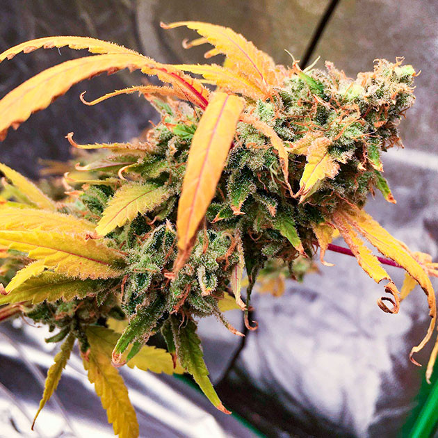 На 17-й неделе, когда кустик уже полноценно промывался, зеленого цвета на нем практически не осталось. Внешне он был похож на клен где-то в конце сентября, когда он уже полыхает огненными желто-красными тонами и готовится сбросить всю свою листву перед приходом зимы.