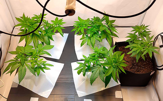 Стадия вегетации подходит к концу, в скором времени поменяю режим освещения, и растишки перейдут в цвет. К концу четвертой недели я наблюдаю не очень высокие, но при этом крепкие кусты, отлично реагирующие на дефолиацию и формирующие разветвленную структуру с множеством веерных листьев. Чудесное творение природы!