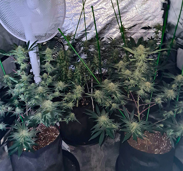 К середине десятой недели растения перестали тянуться. Заметен прогресс по части шишек, они наливаются, становятся плотнее и больше. Расставил в горшки подпорки, чтобы боковым веткам было на что опереться, а то сломаются под весом соцветий. Поливал дважды чистой водой и один раз давал компот, но без CANNA PK 13/14.