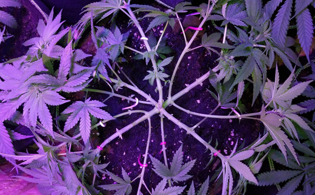 Листья начали скручиваться, и я решил, что это реакция на свет. Поднял лампу повыше (45 см), вроде бы стало лучше. На 18-й день, когда все растения уже чувствовали себя нормально, выполнил топпинг. Все прошло гладко, и еще через два дня начал применять тренировку LST и растягивать ветви при помощи мягких ершиков для трубочек. Конопля тоже перенесла все отлично.
