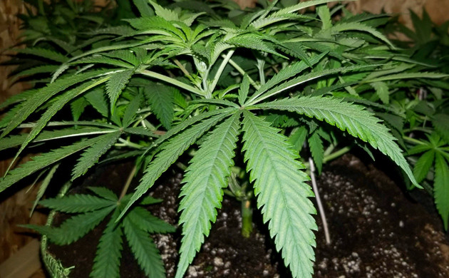 Все идет своим ходом. Растения хорошо развиваются и реагируют на мои действия. На 23-й день пересадил в горшки объемом 7,5 литров. Стресса почти не было. Листья растут очень быстро, попробовал выполнить суперкроппинг конопли, но, кажется, я сделал его не совсем правильно. Увеличил количество удобрений до 2 мл/л. Поливаю уже по 400 мл на куст, рост “девочек” – 13 см.