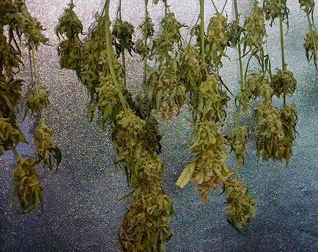 В середине 13-й недели после 2 суток полной темноты обе «Марии» были срезаны и порезаны на веточки. На сушку ушло 500 граммов мокрого урожая, а вес сухого отманикюренного продукта составил 110 граммов с двух растих. Однако в основном все это с одной «Марии», потому что вторая много потеряла из-за гермафродитизма. Тем не менее даже с нее шишули очень качественные.