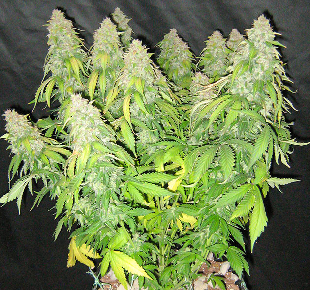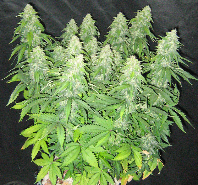 Я остался очень доволен тем, как ведет себя Northern Lights Auto в индоре. В начале развития немного переживал за растение, так как оно немного тормозило и не спешило подрастать. Но как только кустик окончательно укоренился, он начал развиваться очень стремительно. Отличная и крепкая генетика. Кустик спокойно перенес топпинг, LST также пошло ему на пользу. Получился роскошный куст с несколькими большими колами. Сами соцветия большие и плотные, полностью покрывают ветви. Очень пригодился угольный фильтр, так как Northern Lights Auto вонял очень сильно. В теплице я такого аромата не получил. После того как я доставал растение из бокса, его запах витал в воздухе еще несколько часов. Кто надумает гровить в индоре – без фильтра никуда. После просушки взвесил конечный результат, получился 141 грамм.