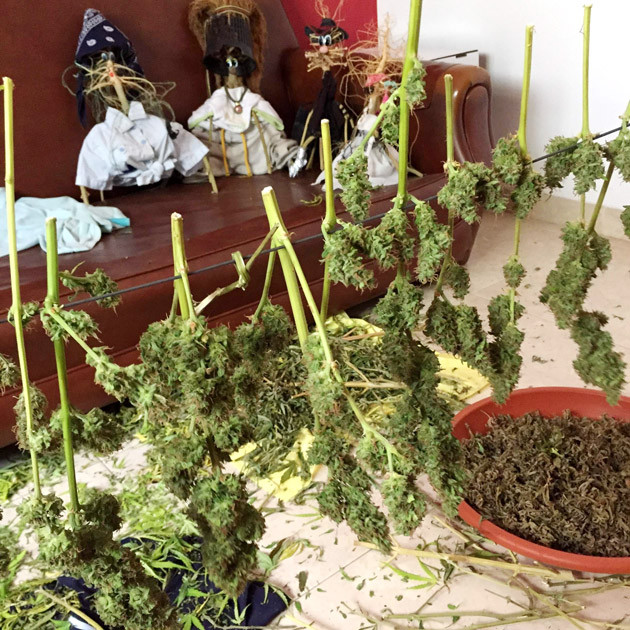 На восьмой неделе сделал дефолиацию. Шишки уже были очень маслянистые, поэтому решил проверить трихомы. К моему удивлению они были уже мутные, значит Big Satana Auto почти созрела. Решил рубить в конце восьмой недели, так как попробовал одну шишку и она меня устроила более чем.