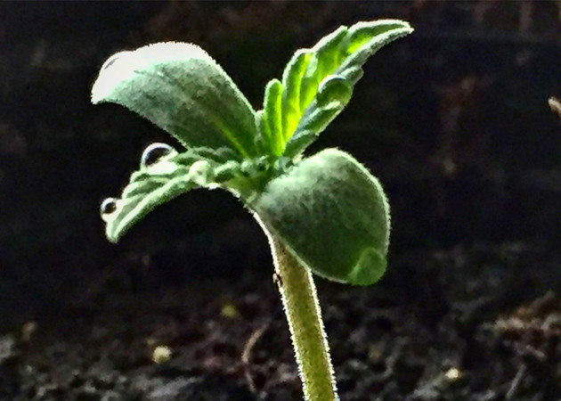 Итак, о самом грове. Буду выращивать в открытом грунте, соответственно условия больше зависят от матушки-природы, чем от меня лично. Сначала замочил семку в стакане воды, а после того, как она утонула, сразу отправил в небольшой горшок с землей. Растиха показалась через трое суток – с этого момента и начал вести отсчет цикла.