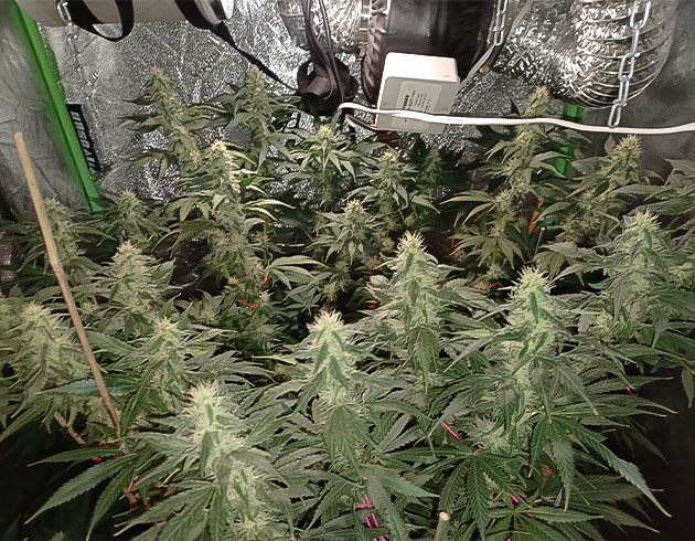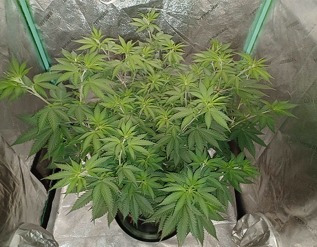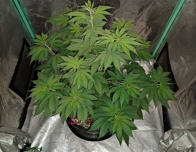 На 10-й неделе поливы были на 65-й, 67-й и 69-й день. 65-й и 69-й с «Блумом». На 66-й день подвязал ветви и сделал небольшую дефолиацию. Ну а к концу недели у меня практически не осталось места, чтобы поднимать борд и поддерживать расстояние в 50 сантиметров. Рост куста после двух недель в режиме 12/12 – 82 сантиметра.
