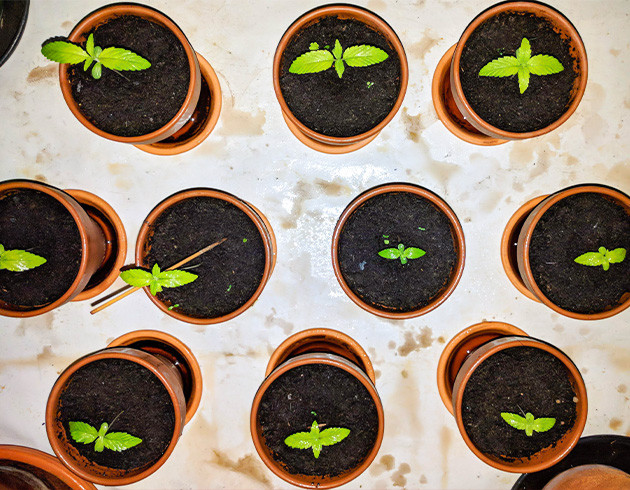 Проращивал все десять семян непосредственно в почве в небольших горшках. Через пять дней 9 из 10 семок уже пробили почву и скинули каску. Еще один догнал остальные через три дня.