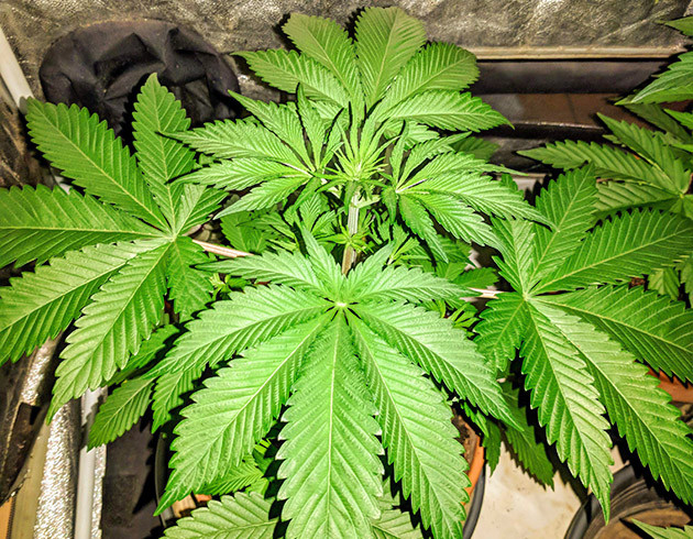 Через пару дней после пересадки, после того как растения освоились после переезда, я сделал фимминг на каждом кусте. Считаю, что выбрал самый подходящий момент: растения уже в больших горшках, все выглядят на 10 из 10, а значит, хорошо справятся с таким стрессом. Так и произошло: кустики стрессанули буквально на пару дней после фимминга и продолжили своё развитие.