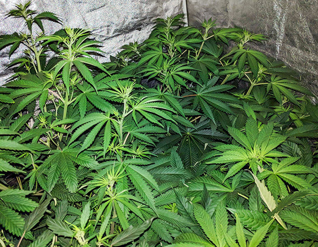 Последняя девочка выросла просто роскошной. Соцветия на ней покрывали ветви практически полностью, не оставляя места между узлами. Плотные, красивые и чертовски ароматные. Эта девочка порадовала меня особенно. К середине 14-й недели все пять кустов были срублены, и настала пора просушки. Для этого у меня есть отдельная комната, где последнюю девочку уже ждали проманикюренные колы с остальных кустов.