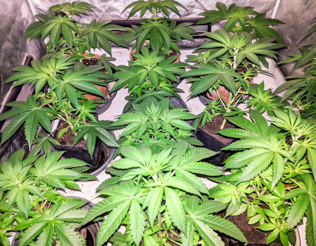 На шестой неделе растения показали пол, и начался предцвет. Поэтому скоро у меня останется только пять кустов, а в палатку я поставлю еще одну лампу ДНаТ. Другие тренировки к кустикам я применять не буду, фимминга достаточно. Не буду даже растягивать, растения и так выглядят отлично. Поливаю только водой, удобрения не использую: в моей почвосмеси достаточно всех элементов. Здоровые растения – прямое тому подтверждение. Каждый куст получает примерно по литру воды, которую я фильтрую обратным осмосом.