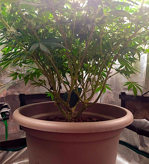 Итак, восьмая неделя от семки, или первая неделя после перевода на 12/12, то есть начинаю отсчет цветения. По большому счету мне осталось только разводить веточки по ячейкам сетки, кормить, поливать растиху и следить за её состоянием. Основная часть работы с кустом проделана на веге. Увеличил разовый объём полива до 1,5 литров, лью по схеме: удобрения – чистая вода – удобрения. На этой неделе ввёл в схему питания Bio Bloom: