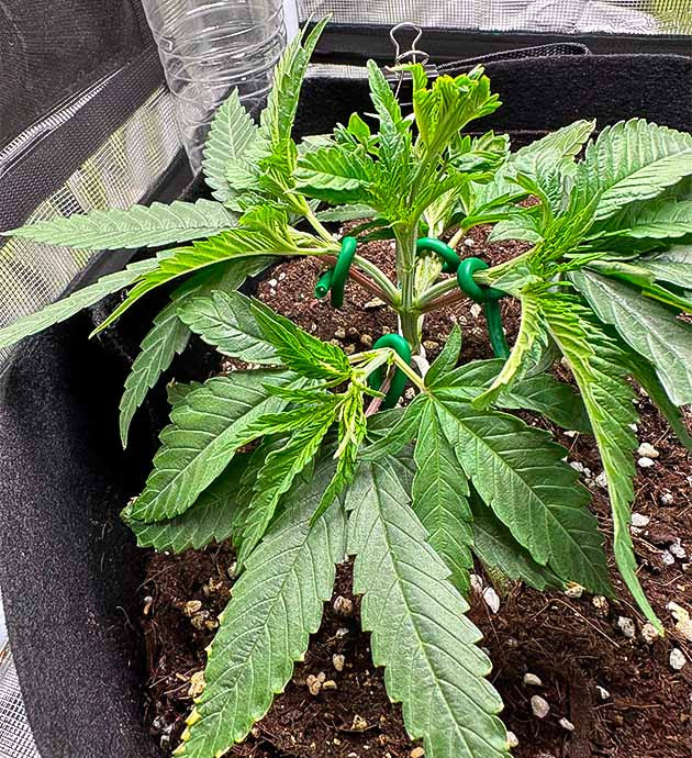Последняя неделя вегетации, со следующей переведу растение в световой режим 12/12 и запущу цветение. А пока я применил дефолиацию, чтобы убрать несколько лишних листьев.