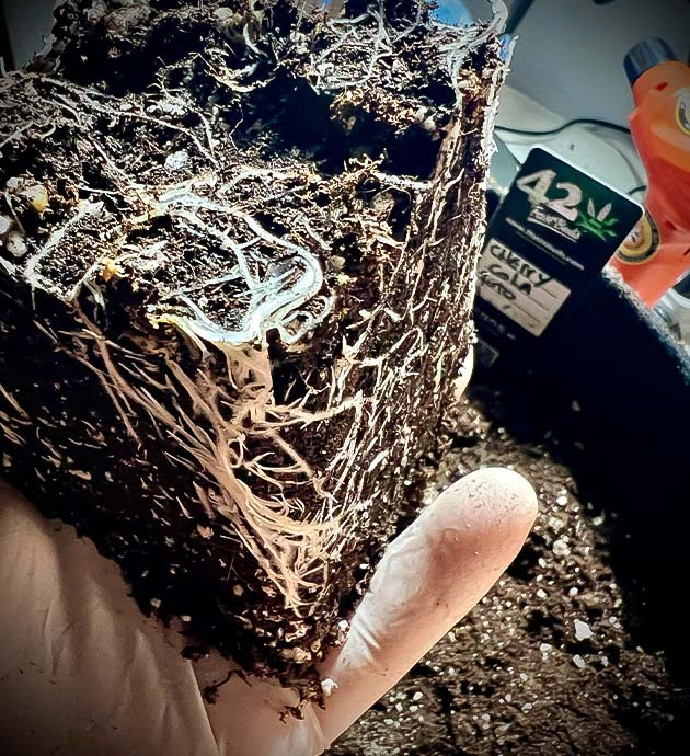 Вторая неделя началась с пересадки расты в гроубэг на 15 литров. Замес состоит из органической почвы, перлита и кокоса. За сутки до переезда насыпал в бэг All-in-One Pellet 75 грамм и микоризы от Aptus, после чего пролил чистой водой. Спустя сутки после переезда растишка получила еще порцию вспомогательной подкормки: