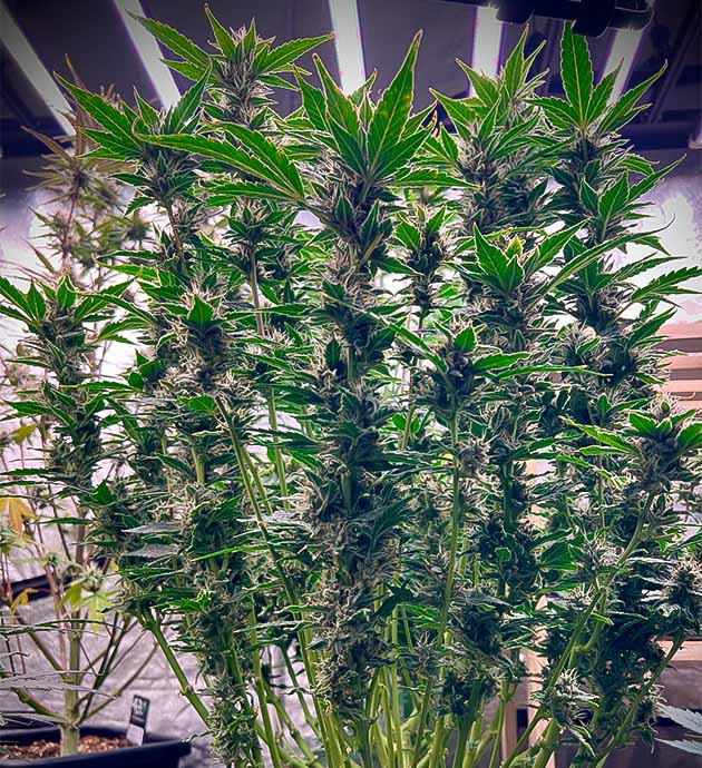 После дефолиации шишки начали набирать еще быстрее и пухли так, что вот-вот лопнут. На 11-й неделе кустик получил последнюю порцию подкормки и перешел на чистую воду. pH регулирую до 6,8, лью по 3 литра через день. Делаю это не из-за какого-то графика, а потому что куст выпивает такое количество на ура, по ощущениям можно лить даже больше. На 12-й неделе промывка была более интенсивной, по 5 литров через день. И, хочу вам сказать, грунт просыхал примерно так же, только дренажа было больше. В конечном итоге 12-я неделя стала последней на корню для этой прекрасной растишки.