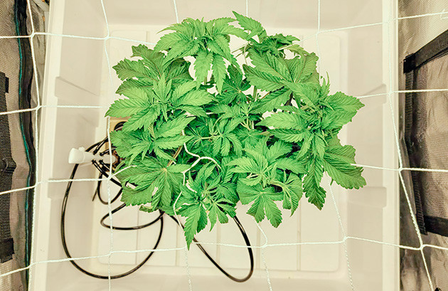 Сделал еще одну дефолиацию, и по большому счету моя работа с кустом окончена, осталось только проверять его на предмет внезапных проблем/болезней, менять раствор да периодически щипать лишнюю листву. Получился очень равномерный полог, без явно выбивающихся макушек, есть некоторые на 3-5 сантиметров выше остальных, но это вообще не критично. Запах стал более насыщенным, теперь он не просто конопляный, а резко-конопляный. 😊 При этом он не вонючий, как бывает со всякими Skunk и Diesel. Нормальный приятный запах цветущей марьиванны. Фильтр, кстати, справляется на все 100 %, вне бокса не слышно вообще.