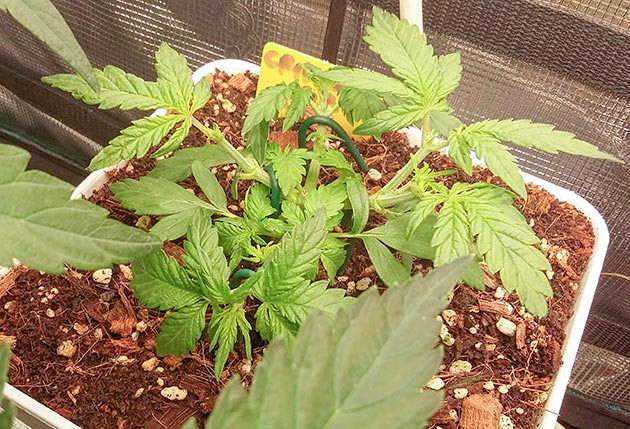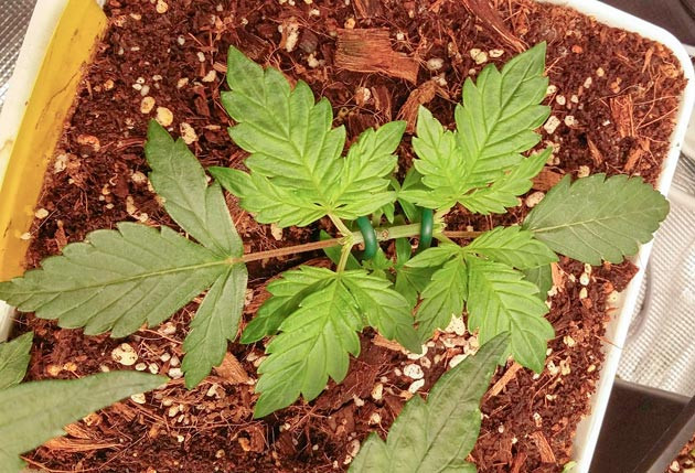На четвертой неделе я приступил к мейн линингу, а на пятой прибегнул к FIM-обрезке. Никаких признаков стресса не наблюдается, сорт очень вынослив. Также я увеличил количество воды для полива до 0,5 литра в сутки.