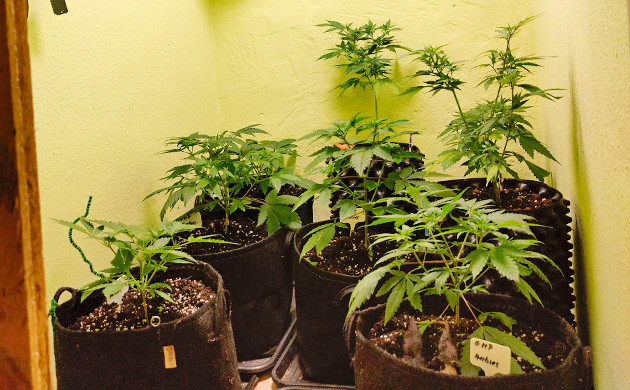 К пятой неделе девочки явно переросли свои маленькие горшки и были пересажены в 11-литровые контейнеры. Они были достаточно компактными и невысокими, поэтому я решил немного простимулировать вертикальный рост, снизив вдвое мощность лампы (ViparSpectra XS1000 LED). Таким образом, кустики должны немного вытянуться до начала цветения.