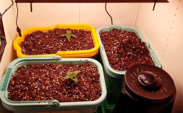 Немного об условиях грова. Гроубокс стандартных размеров – 60х60х120 см. Как я понял из прошлого грова (2 куста), в нём достаточно места на три растения. Использовал ведра прямоугольной формы на 9 литров. Насверлил по всему периметру дна отверстий для дренажа. В качестве субстрата использую BioBizz AllMix. Освещение – LED-панель мощностью 100 W от компании Siyanie.