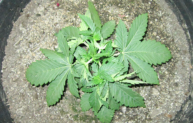 На третьей неделе кустик нарастил приличное количество листвы. Полив – 1,5 литра чистой воды раз в 2-3 дня, ориентируюсь по весу горшка. Растение окрепло и готово к более серьезным тренировкам. Начал с того, что отрезал самые маленькие ветки с нижних ярусов. В середине недели прищипнул центральную макушку, это отлично стимулирует развитие боковых ветвей. Листья пока не режу, продолжаю загибать друг под друга.