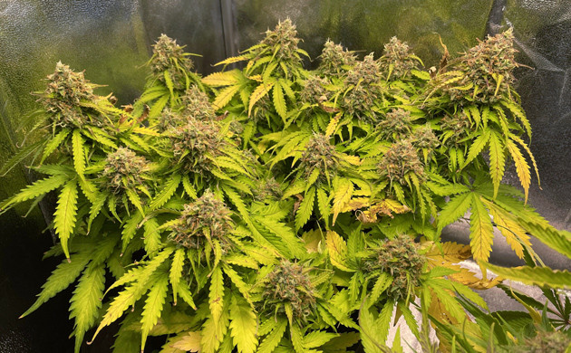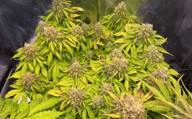 Девятая и десятая недели – отличный пример стабильного развития автоцвета. От меня требовался лишь полив раз в два дня. Лил по 1,2 литра. На девятой неделе один раз давал Bio-Bloom и одну порцию микробов Great White. Растиха уверенно созревала, шишки становились всё больше. В начале десятой недели я с радостью обнаружил обилие трихом на всех соцветиях. С этого момента я перестал давать удобрения и начал постепенно промывать растиху.