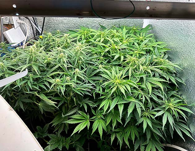Девочки чувствуют себя хорошо, они успешно перешли на цветение и становятся гуще и выше. По высоте они вытянулись до 30 сантиметров. Я изменил световой режим на 19/5, увеличил количество воды для полива до четырех литров и уменьшил расстояние между лампой и кустами до 30 сантиметров. Также я активно применяю дефолиацию, так как с каждым днем растишки становятся все более и более плотными, не давая свету свободно проникать в отдаленные участки. В удобрениях я изменил количество Mega Crop 2 Part A 5-12-26 до 1 мл/л.