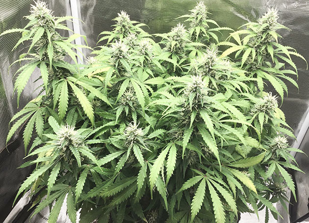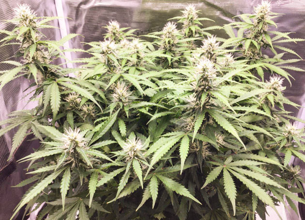 К 10-й неделе куст успокоился (в плане вытягивания). Последний рывок был впечатляющим, моё почтение генетике. Теперь растиха полностью перешла в режим «качаем шишки». Соцветия на глазах становятся больше и, что не менее важно, плотнее. Полив, удобрения – всё по плану, 1,5 литра раз в два дня.
