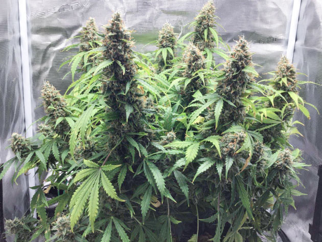 Привет всем энтузиастам грова! Рад видеть вас в моём дневничке, надеюсь, вам понравится мой кустик и вы почерпнете что-то полезное для себя. Особенно интересным гроурепорт должен быть тем, кто выступает категорически против топпинга автоцветов. На примере сорта конопли Godzilla Cookies Auto я постараюсь убедить скептиков в том, что в обрезке автиков нет абсолютно ничего плохого. Но обо всём по порядку. Итак, сорт «Годзилла Кукис», автоцвет от Herbies Seeds. У меня уже есть опыт выращивания этого гибрида, одна семка из пачки уже дала урожай, и его запасы подходят к концу, так что самое время заряжать новый куст. Гровлю в небольшом тенте от Mars Hydro, 70 х 70 х 160, под бордом Spider Farmer SF-1000 (100 W). Никаких экстравагантных приспособлений не использую, всё по стандарту: вентиляция, простенький кулер для обдува, китайский термогигрометр. Горшок – AirPot на 19 литров, почвосмесь универсальная + около 15 % кокосового волокна + 15 % перлита. Таким образом грунт получается более воздушным и работать с ним легче, в комок черной грязи после пролива не превращается. О сетапе больше рассказать нечего, так что перейдём ближе к делу.