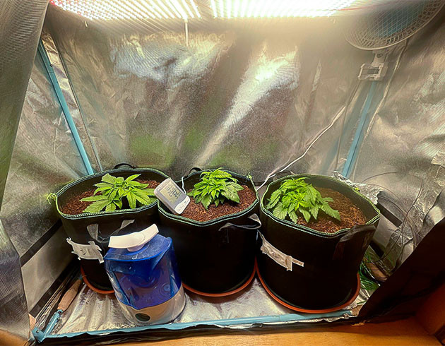 На второй неделе саженцы немного подросли, но пили всё так же, около литра раз в два дня. Условия в гроубоксе особо не изменились: