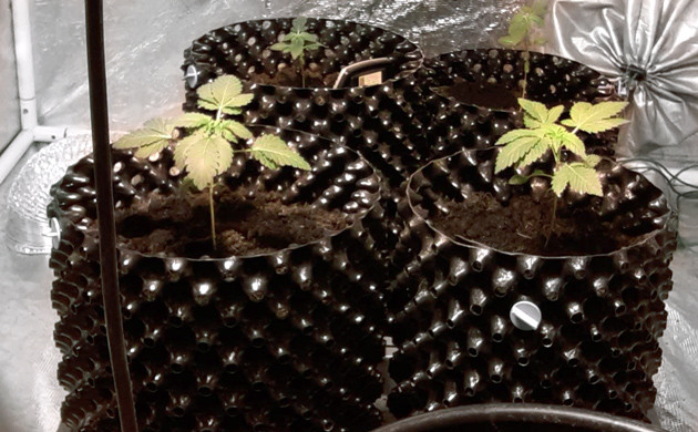 Высаживал семки я сразу в большие горшки. Решил не экспериментировать с пересадкой. Два саженца в Airpots по 20 литров, два в Airpots по 15 литров и один в обыкновенном садовом горшке на 20 литров. Сначала они будут получать только отстоянную водопроводную воду. В боксе установлена лампа ДНаТ Sunmaster Dual Spectrum 600 W. Другие условия в гроубоксе следующие: