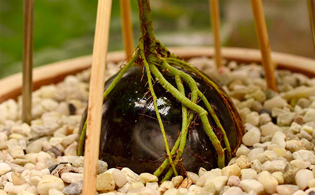 На седьмой неделе я убрал верхний керамический сосуд, в котором лежала стеклянная сфера. Как я и ожидал, корни обросли сферу и были достаточно крепкими для дальнейшего развития.