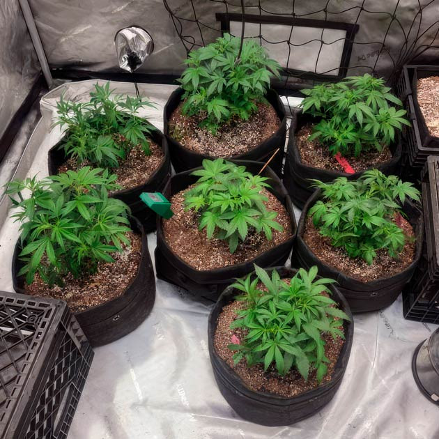 22-й день. Хочу немного поднять pH, чтобы улучшить усвоение питательных веществ и получить более крупные растения. Это мой первый урожай, и я всю дорогу нахожусь в состоянии внутреннего терзания, что делаю что-то не так. Сейчас держу влажность повыше и даю передохнуть после обрезки. Мне кажется, что перебор с УФ затянул развитие каннабиса, но они неплохо восстанавливаются и выглядят привлекательно. Пока никаких признаков цветения, и я этому очень рад, так как они все еще маловаты и хотелось бы больше растяжки.