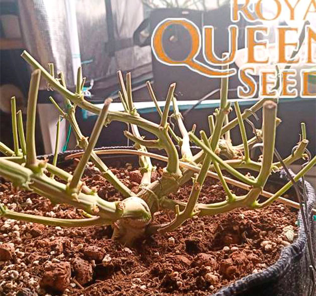 HST (High Stress Training). На 5-й и 6-й неделях я применял методы жесткой обрезки для улучшения формирования шишек на верхних ветках.