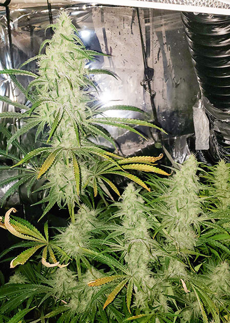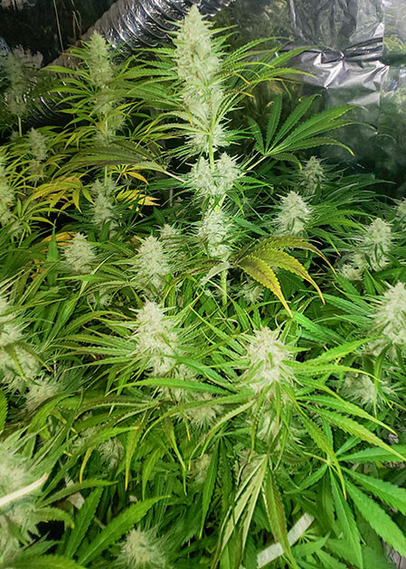 Условия культивации у меня не люксовые, но вполне комфортные. По крайней мере, каких-то значительных проблем не было, да и по урожайности у меня претензий нет. Для грова использую небольшое техническое помещение, что-то вроде подсобки. Обклеил часть стен фольгой, повесил парочку вентиляторов, и готово. На веге использую самодельный борд на бытовых ледах и паре COB, на цвет ставлю одну или две ДНаТ на 1000 Вт в зависимости от количества кустов. Последнее время выращиваю в гидропонике на шесть горшков + резервуар. Горшки по 7 литров, не очень большие.