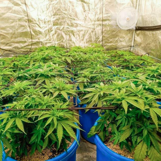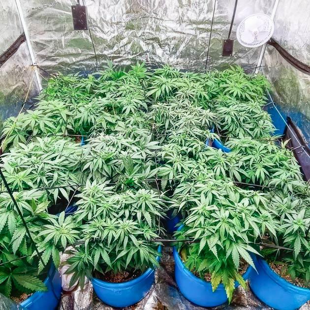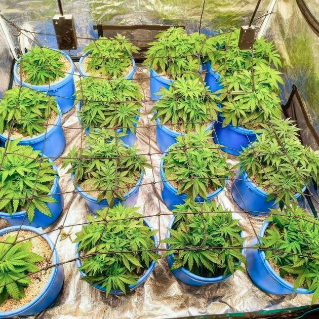 Все идет точно так, как я запланировал. Растения за последние дни хорошенько вытянулись, обросли листьями и уже практически достали до высоты сетки. И это означает, что наступило время второй радикальной обрезки. Работаю в медитативном состоянии и никогда не жалею кустики во время дефолиации. Проверено не один раз, что здоровое и довольное жизнью растение может спокойно восстановиться, даже если ему вообще оставить всего парочку небольших листочков. Так что безжалостно обрезаю те же 15 кустов, оставив нетронутым нашего аутсайдера. После хорошенько поливаю горшки питательным раствором и закрываю палатку, чтобы они приходили в себя в спокойной уютной атмосфере, ведь совсем скоро они будут переведены на цветение.