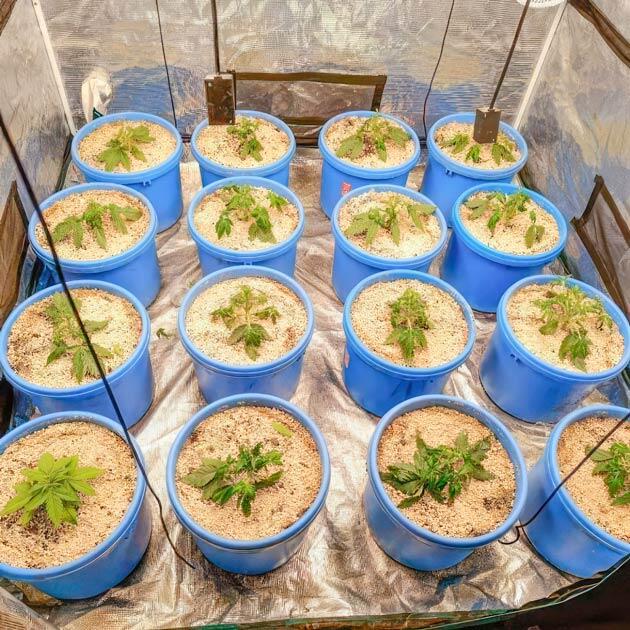 На этой неделе я увеличил Bio Bloom до 2 мл/л и начал поднимать частоту поливов, так как из-за быстрого роста и легкого субстрата с высоким процентом перлита влага очень быстро покидает корневую зону. Если в начале можно было по 7-10 дней держать горшки без полива, то сейчас уже через 3-4 дня горшки сухие и нужно в любом случае давать воду. Причем, по мере роста кустов, этот промежуток будет только укорачиваться, но именно легкость и воздухопроницаемость субстрата позволяют корням легко разрастаться и активно поглощать питание.