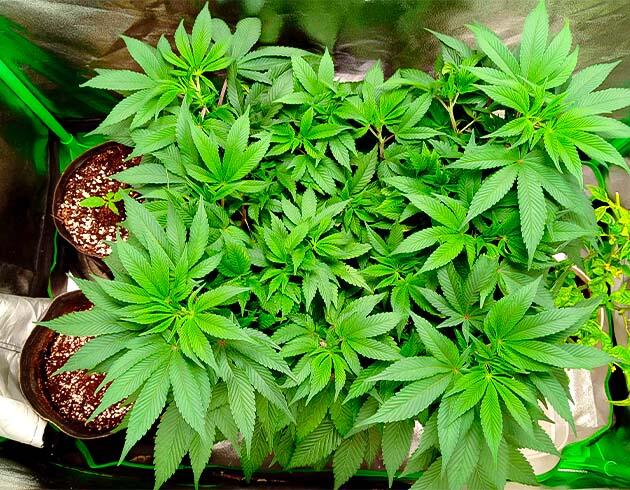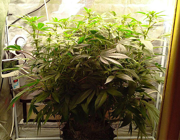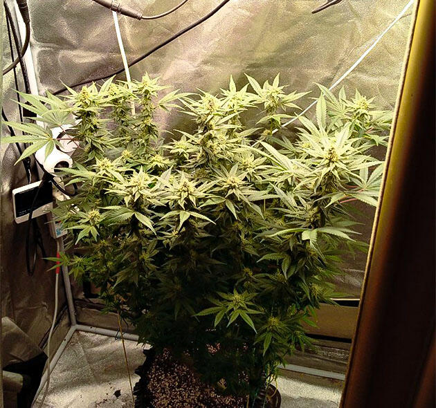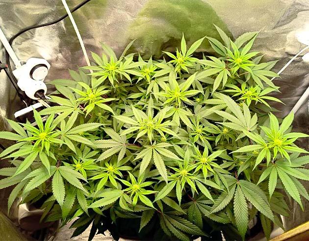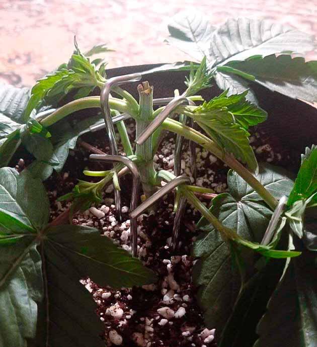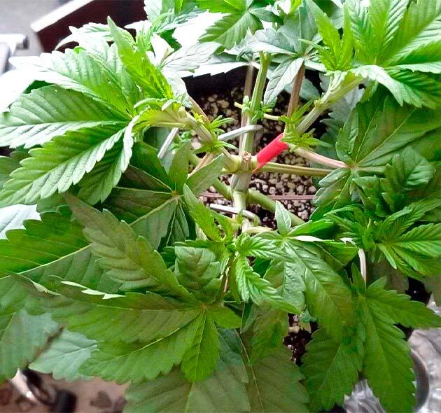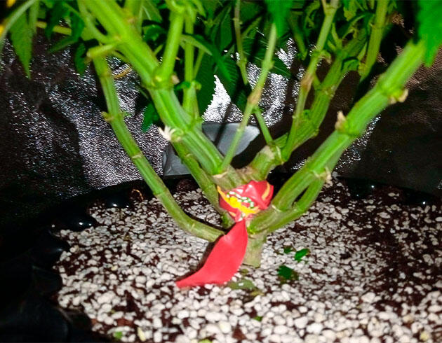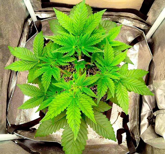 На этой неделе были сделаны топпинг и небольшая дефолиация для открытия соцветий. Вместе с тем дал старт постоянной и постепенной растяжке LST. Скоро растение оправится от стресса, немного подрастет, и его ждет пересадка в 16-литровый воздушный горшок. Сейчас все так же поливаю раз в неделю, но концентрацию удобрений поднял до 2 мл/л, ppm 600.